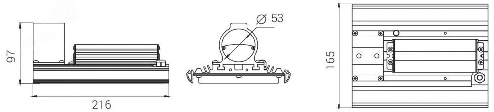 Корпус и консольное крепление изготовлены из экструдированного алюминиевого профиля (сплав АД31Т1) с анодированным покрытием. Защитное стекло выполнено из стабилизированного ударопрочного оптического поликарбоната. Опционально доступны крепления - регулируемый консольный кронштейн (до 82 мм), тросовый подвес, рым-болт и встраиваемое крепление для АЗС.