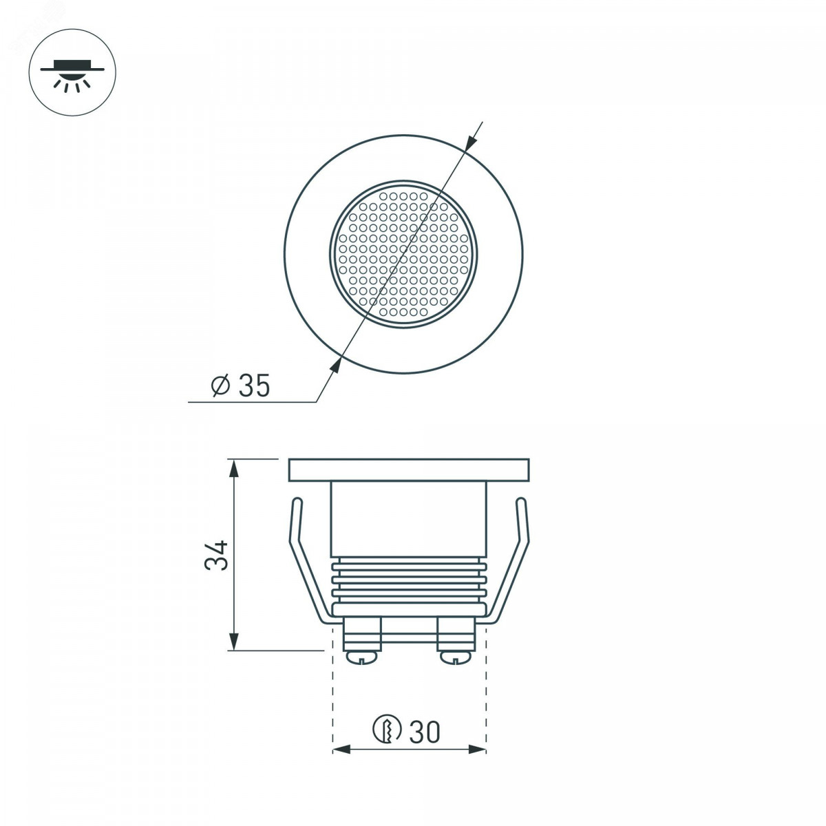 Врезной круглый мебельный светильник 1Вт, корпус белый алюминий. Цвет ТЕПЛЫЙ БЕЛЫЙ 3000K. Светодиод 1х1W OSRAM. CRI-80, Св.поток 80-90лм, угол 30 градусов . Питание 180-240VAC, 1Вт, 150mA 6-7V, драйвер в комплекте. Размеры d35x34 мм, врезное отверстие d30 мм. Размер драйвера - 36x18x17 мм.