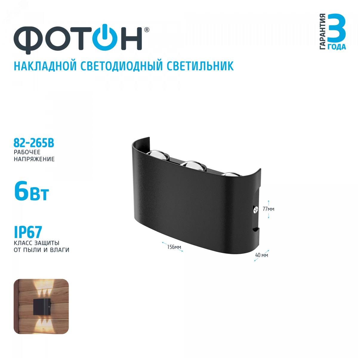 Светодиодные накладные светильники ФОТОН категории `архитектурная подсветка` предназначены для декоративного освещения домов, дач и других строений, в том числе в условиях нестабильного напряжения электросети. Обеспечивают стабильно ровный световой поток в диапазоне напряжений от 82 В до 265 В. Может использоваться в самых неблагоприятных погодных условиях, в том числе при снеге и дожде любой интенсивности. Технология термореактивной порошковой покраски обеспечивает устойчивость к истиранию, механическому и электрическому воздействию, УФ-излучению и перепадам температуры.