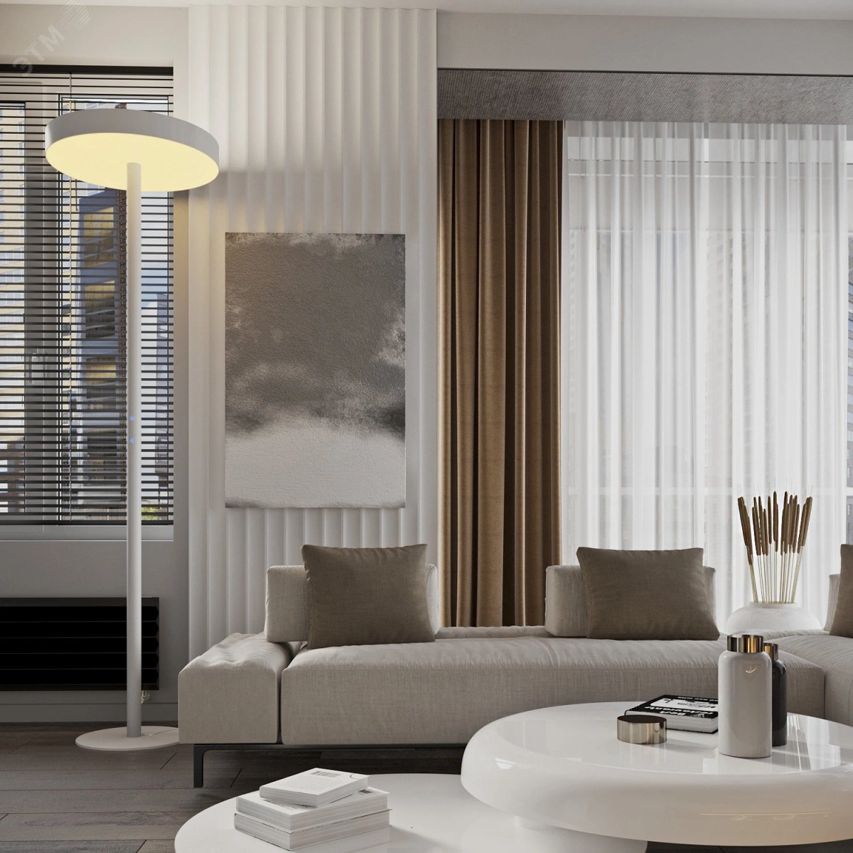 Светодиодный светильник RVE-LBX-CIELO-UPDOWN-2150х600-T-DIM (Торшер круг 600х600х80мм 84Вт напольный 4000K стойка 2060х400мм черный)