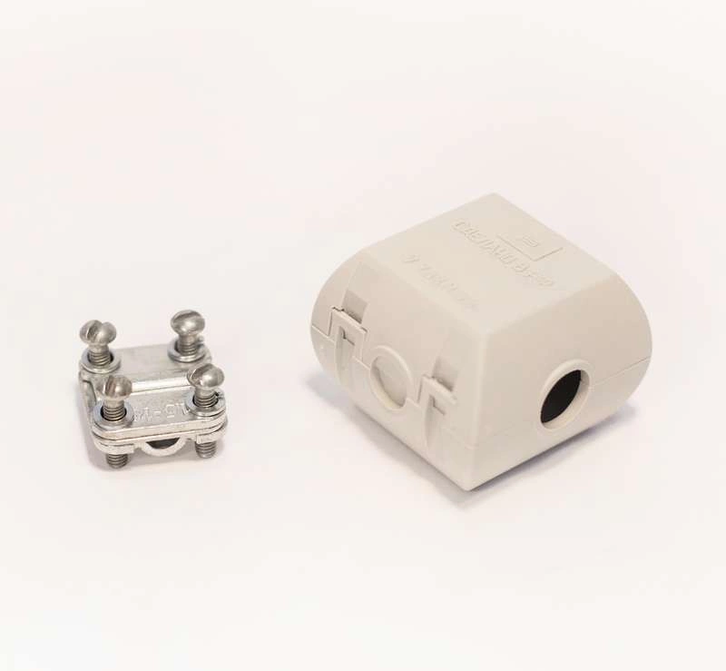 Предназначен для выполнения ответвлений медных и алюминиевых проводов от магистральных проводников напряжением до 660В (без их разрезания) проводниками из тех же материалов.