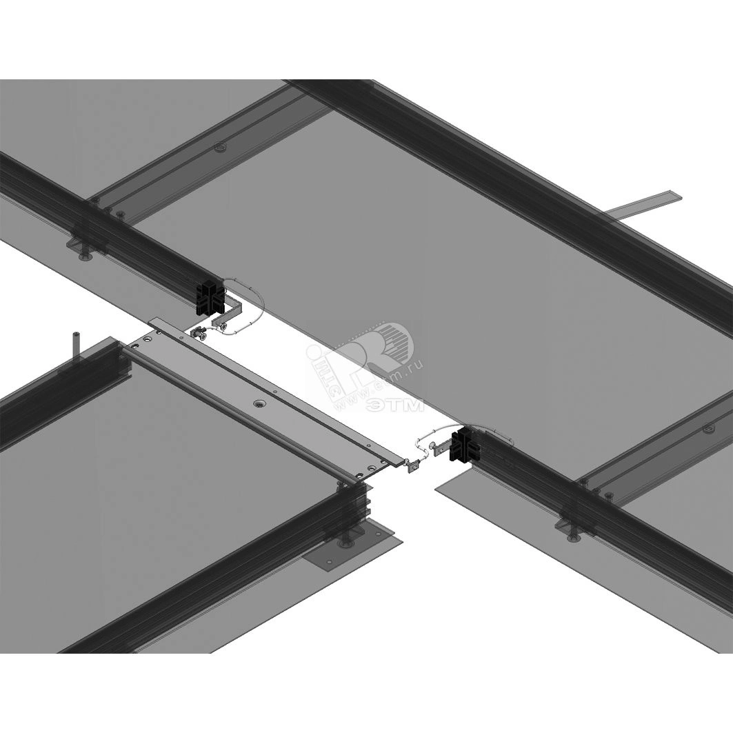Т-образный ответвитель для напольного короба (пластик (поливинилхлорид) под заливку. 2 Соединительных уголка (OVGHV) + Перекладина + 2 Зажима заземляющего провода (OVGEQH). Для герметизации открытой части кабелепровода (напольный короб под заливку).