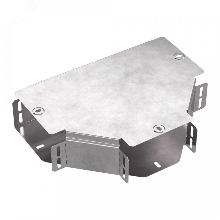 Аксессуары изготовленные из стали с защитным покрытием по методу Сендзимира – это изделия, на которых защитное цинковое покрытие было нанесено на листовую сталь перед изготовлением. Толщина защитного покрытия варьируется от 10 до 22мкм. Климатическое исполнение изделий УХЛ2, что предусматривают эксплуатацию в помещении и под навесом, при температуре эксплуатации от -80 до +150 градусов С. Т-образный ответвитель предназначен для разветвления кабельных трасс в горизонтальном направлении,для перфорированных и глухих лотков. В комплект входит крышка.