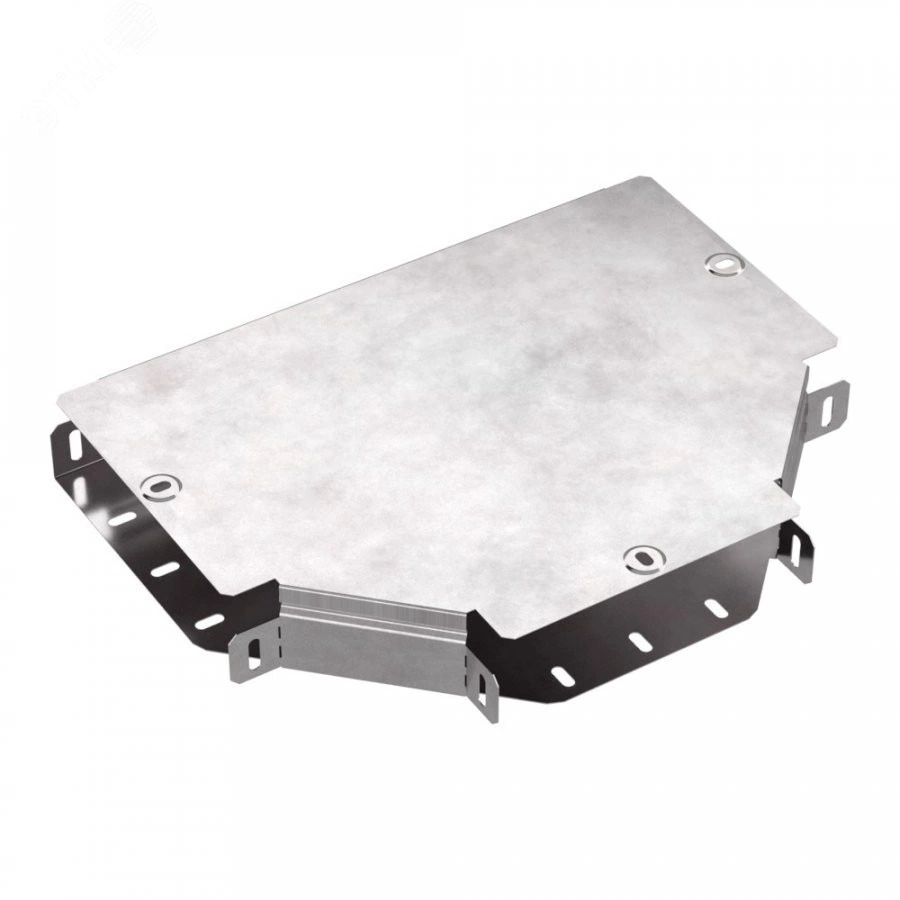 Аксессуары изготовленные из стали с защитным покрытием по методу Сендзимира - это изделия, на которых защитное цинковое покрытие было нанесено на листовую сталь перед изготовлением. Толщина защитного покрытия варьируется от 10 до 22мкм. Климатическое исполнение изделий УХЛ2, что предусматривают эксплуатацию в помещении и под навесом, при температуре эксплуатации от -80 до +150С. Т-образный ответвитель предназначен для разветвления кабельных трасс в горизонтальном направлении,для перфорированных и глухих лотков. В комплект входит крышка.