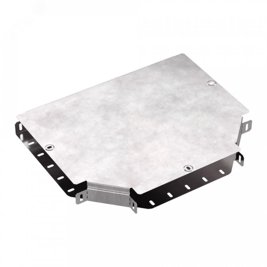 Аксессуары изготовленные из стали с защитным покрытием по методу Сендзимира - это изделия, на которых защитное цинковое покрытие было нанесено на листовую сталь перед изготовлением. Толщина защитного покрытия варьируется от 10 до 22мкм. Климатическое исполнение изделий УХЛ2, что предусматривают эксплуатацию в помещении и под навесом, при температуре эксплуатации от -80 до +150С. Т-образный ответвитель предназначен для разветвления кабельных трасс в горизонтальном направлении,для перфорированных и глухих лотков. В комплект входит крышка.