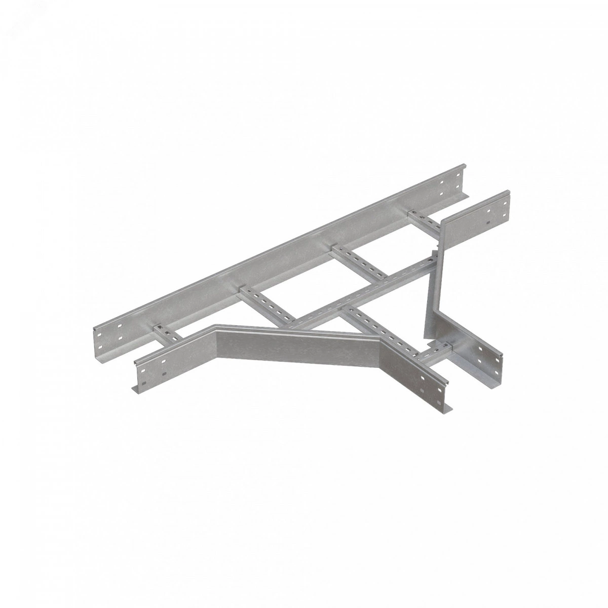 Т-отвод лестничный позволяет придерживаться заданных радиусов изгиба кабельной трассы при монтаже. Модификация изделия используется для отвода от кабельной трассы под углом 90 градусов. Элемент рекомендовано применять c металлическим лестничным лотком шириной 700 мм и высотой борта 100 мм. Изделие выполнено из стали оцинкованной по методу Сендзимира. Предназначено для применения в местах предпочтительно с сухим климатом, внутри помещений и в слабоагрессивных средах, в соответствии с ГОСТ 15150-69. Т-отвод легко монтируется с помощью соединительных пластин и метизов.