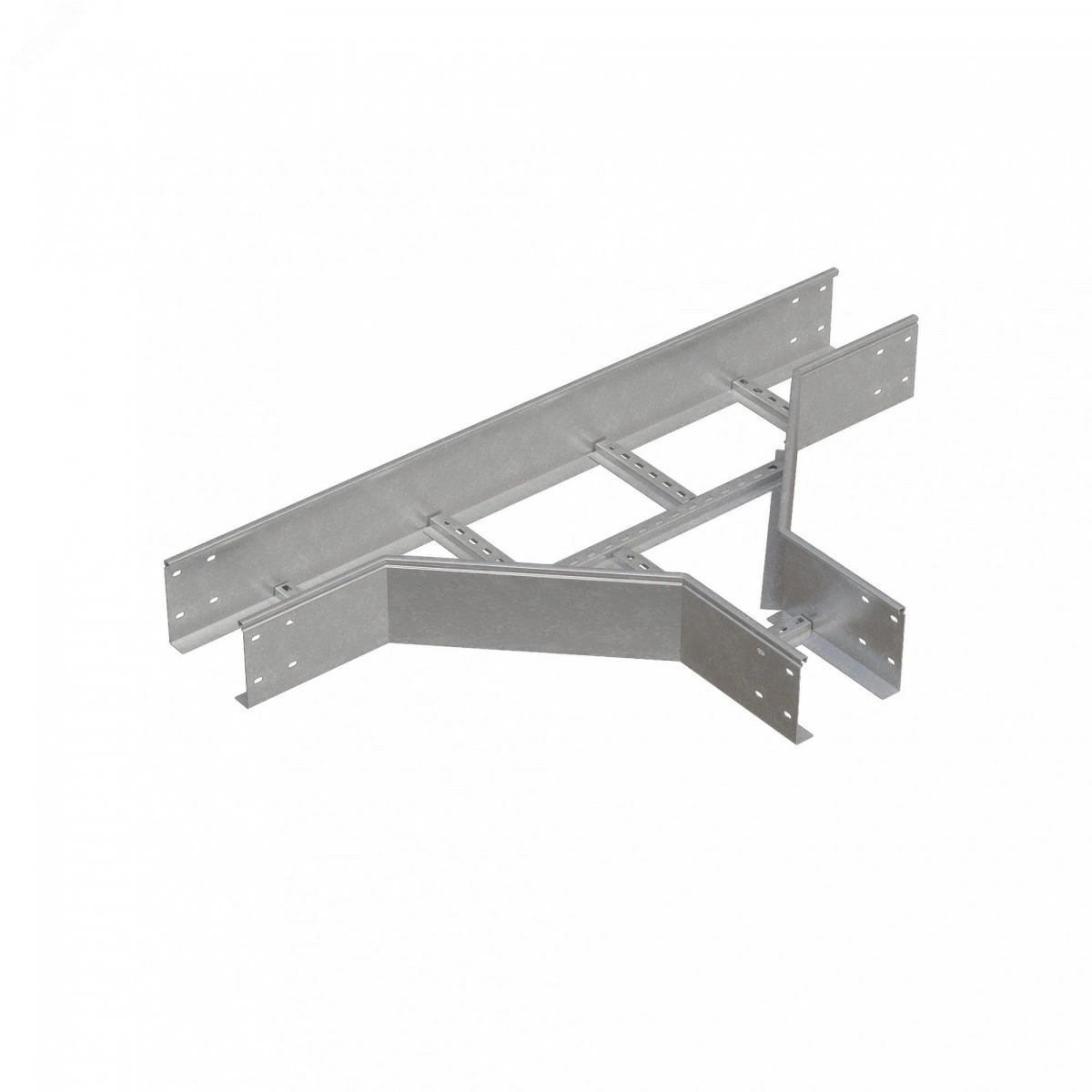 Т-отвод лестничный позволяет придерживаться заданных радиусов изгиба кабельной трассы при монтаже. Модификация изделия используется для отвода от кабельной трассы под углом 90 градусов. Элемент рекомендовано применять c металлическим лестничным лотком шириной 500 мм и высотой борта 150 мм. Изделие выполнено из стали оцинкованной по методу Сендзимира. Предназначено для применения в местах предпочтительно с сухим климатом, внутри помещений и в слабоагрессивных средах, в соответствии с ГОСТ 15150-69. Т-отвод легко монтируется с помощью соединительных пластин и метизов.