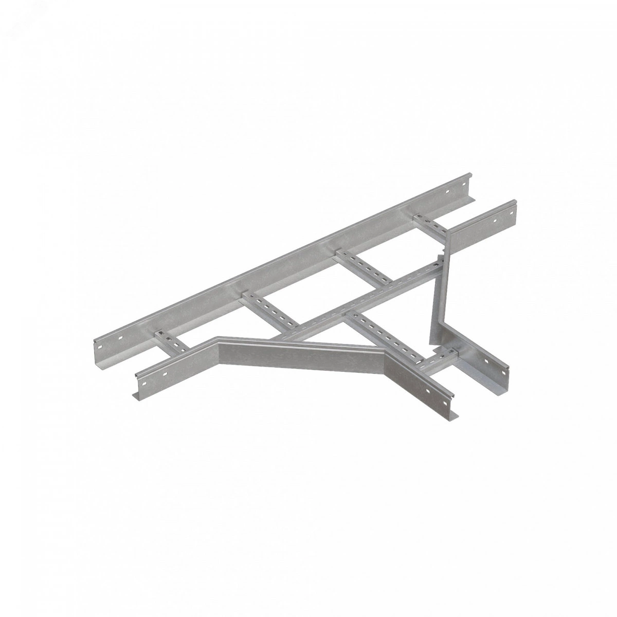 Т-отвод лестничный позволяет придерживаться заданных радиусов изгиба кабельной трассы при монтаже. Модификация изделия используется для отвода от кабельной трассы под углом 90 градусов. Элемент рекомендовано применять c металлическим лестничным лотком шириной 200 мм и высотой борта 80 мм. Изделие оцинковано методом горячего погружения согласно ГОСТ 9.307-89 и используется для монтажа в помещениях с высокой влажностью и низкой загрязненностью, под открытым небом и в слабокоррозийной среде, в соответствии с ГОСТ 15150-69. Т-отвод легко монтируется с помощью соединительных пластин и метизов.