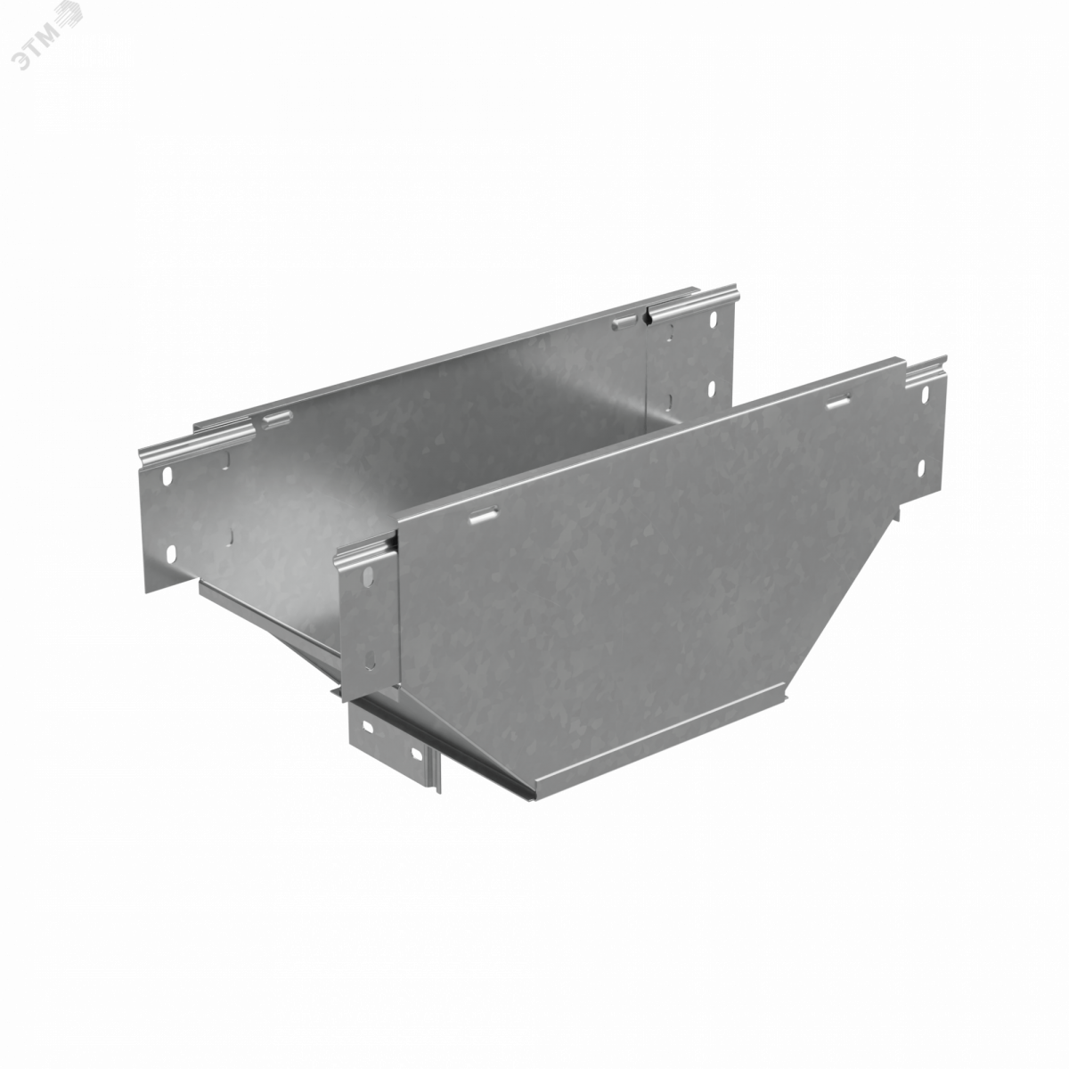 Т-отвод вертикальный вниз серии ''PLUS'' позволяет придерживаться заданных радиусов изгиба кабельной трассы при монтаже. Модификация изделия используется для отвода трассы вниз, при этом разворачивая открытую часть металлического лотка вокруг своей оси на 90 градусов. Элемент рекомендовано применять c металлическим листовым лотком этой же серии шириной 150 мм и высотой борта 100 мм. Изделие оцинковано методом горячего погружения согласно ГОСТ 9.307-89 и используется для монтажа в помещениях с высокой влажностью и низкой загрязненностью, под открытым небом и в слабокоррозийной среде, в соответствии с ГОСТ15150-69. Т-отвод легко монтируется с помощью метизов. Специальные соединительные лепестки на корпусе секции обеспечивают необходимую жёсткость конструкции стыкового узла.