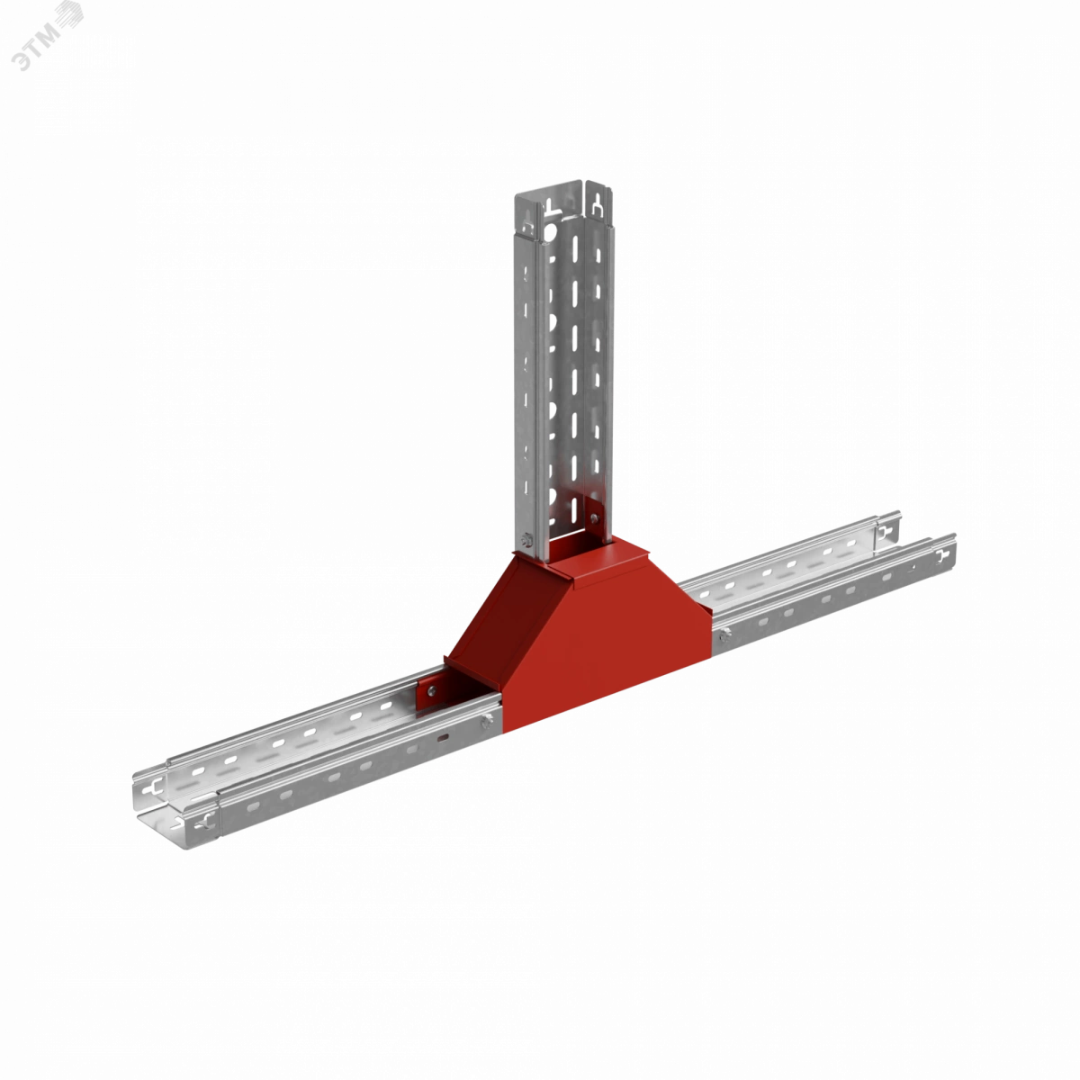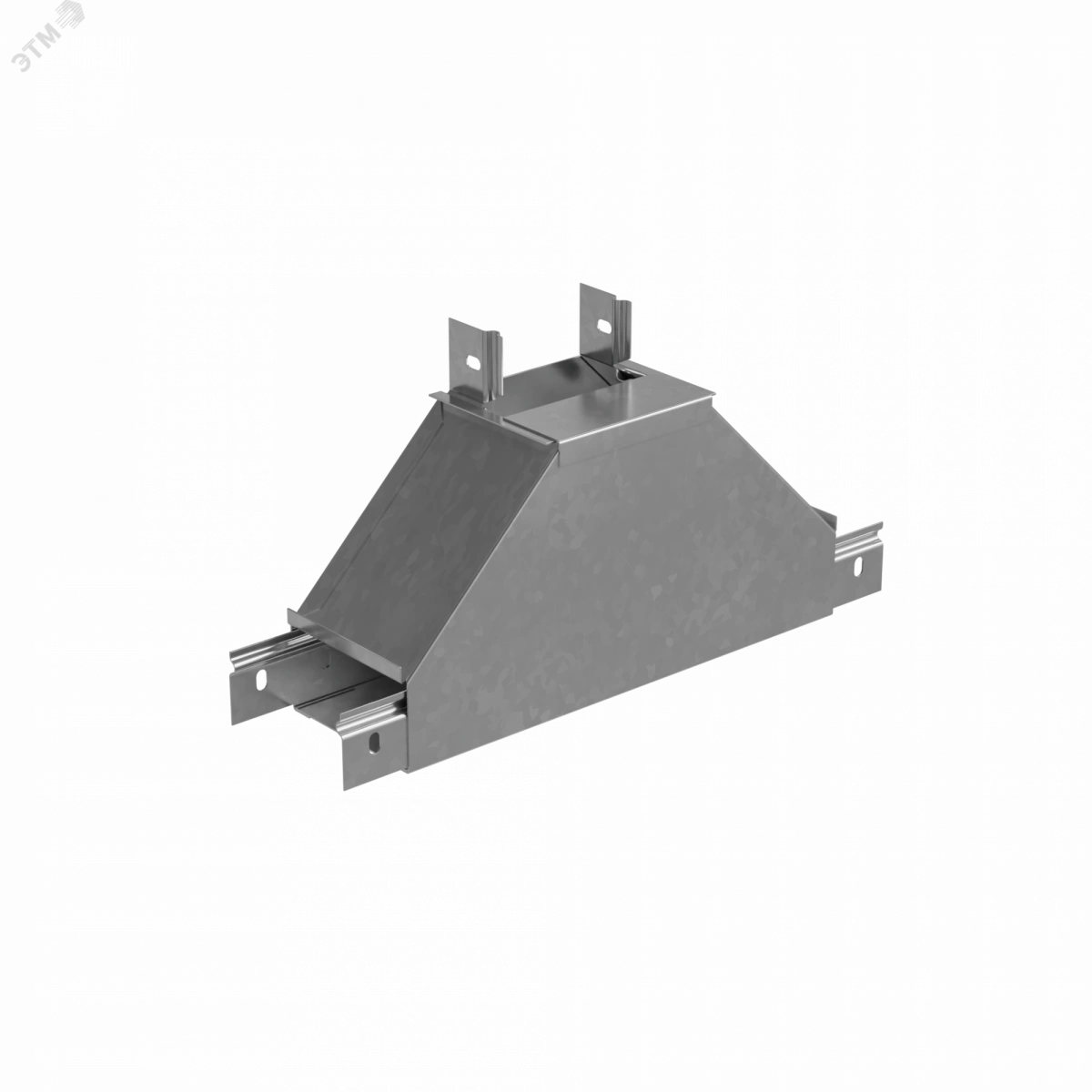Для обеспечения заданных радиусов изгиба кабельной трассы при монтаже используется Т-отвод вертикальный вверх серии ''PLUS''. Конструкция элемента применима для отвода трассы вверх, при этом разворачивая открытую часть металлического лотка вокруг своей оси на 90 градусов. Элемент рекомендовано использовать c металлическим листовым лотком этой же серии шириной 500 мм и высотой борта 50 мм. Изделие выполнено из стали и оцинковано по методу Сендзимира. Предназначено для применения в местах предпочтительно с сухим климатом, внутри помещений и в слабоагрессивных средах, в соответствии с ГОСТ15150-69. Специальные соединительные лепестки на корпусе секции обеспечивают необходимую жёсткость конструкции стыкового узла и целостность трассы.