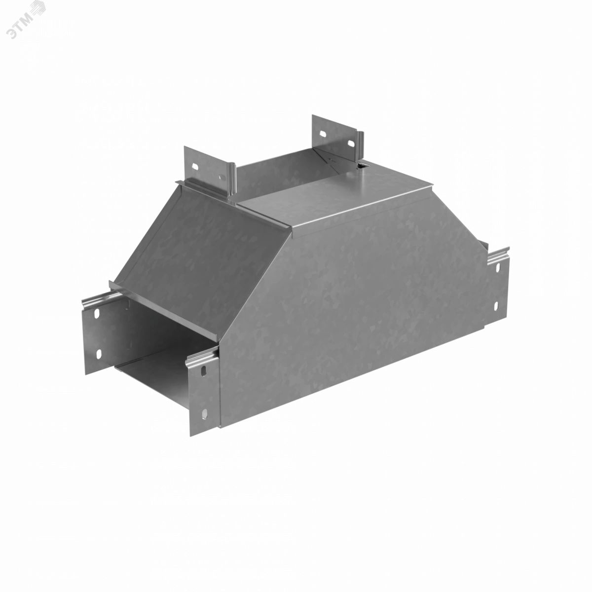Для обеспечения заданных радиусов изгиба кабельной трассы при монтаже используется Т-отвод вертикальный вверх серии ''PLUS''. Конструкция элемента применима для отвода трассы вверх, при этом разворачивая открытую часть металлического лотка вокруг своей оси на 90 градусов. Элемент рекомендовано использовать c металлическим листовым лотком этой же серии шириной 200 мм и высотой борта 80 мм. Изделие оцинковано методом горячего погружения согласно ГОСТ 9.307-89 и используется для монтажа в помещениях с высокой влажностью и низкой загрязненностью, под открытым небом и в слабокоррозийной среде, в соответствии с ГОСТ15150-69. Т-отвод легко монтируется с помощью метизов. Специальные соединительные лепестки на корпусе секции обеспечивают необходимую жёсткость конструкции стыкового узла и целостность трассы.