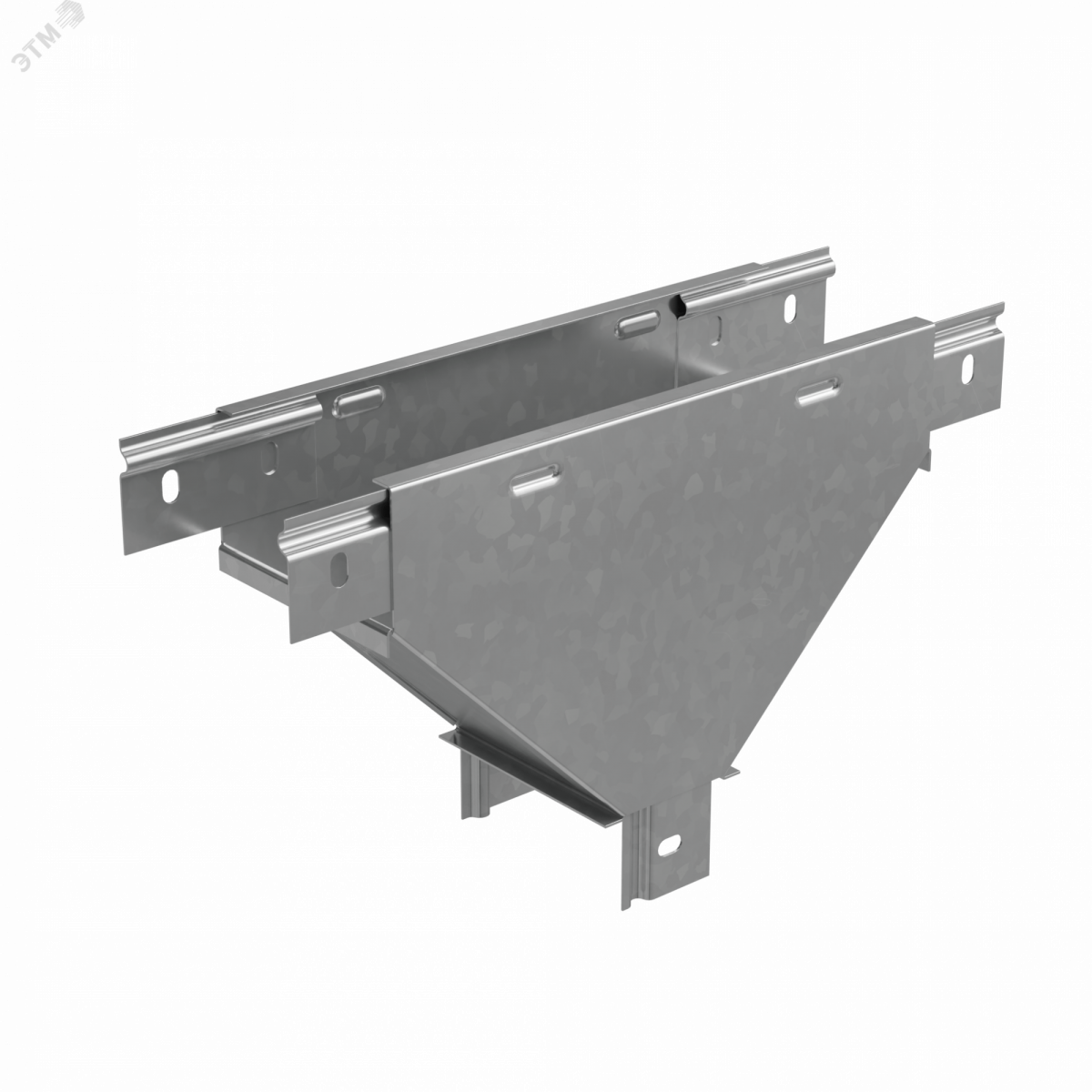 Т-отвод вертикальный вниз серии ''PLUS'' позволяет придерживаться заданных радиусов изгиба кабельной трассы при монтаже. Модификация изделия используется для отвода трассы вниз. Элемент рекомендовано применять c металлическим листовым лотком этой же серии шириной 600 мм и высотой борта 50 мм. Изделие оцинковано методом горячего погружения согласно ГОСТ 9.307-89 и используется для монтажа в помещениях с высокой влажностью и низкой загрязненностью, под открытым небом и в слабокоррозийной среде, в соответствии с ГОСТ15150-69. Т-отвод легко монтируется с помощью метизов. Специальные соединительные лепестки на корпусе секции обеспечивают необходимую жёсткость конструкции стыкового узла.