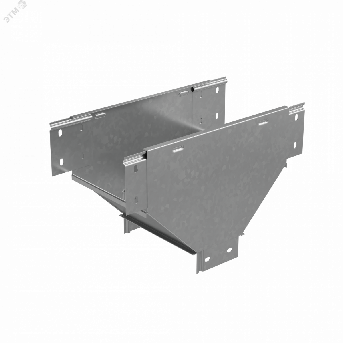 Т-отвод вертикальный вниз серии ''PLUS'' позволяет придерживаться заданных радиусов изгиба кабельной трассы при монтаже. Модификация изделия используется для отвода трассы вниз. Элемент рекомендовано применять c металлическим листовым лотком этой же серии шириной 500 мм и высотой борта 80 мм. Изделие выполнено из стали и оцинковано по методу Сендзимира. Предназначено для применения в местах предпочтительно с сухим климатом, внутри помещений и в слабоагрессивных средах, в соответствии с ГОСТ15150-69. Т-отвод легко монтируется с помощью метизов. Специальные соединительные лепестки на корпусе секции обеспечивают необходимую жёсткость конструкции стыкового узла.
