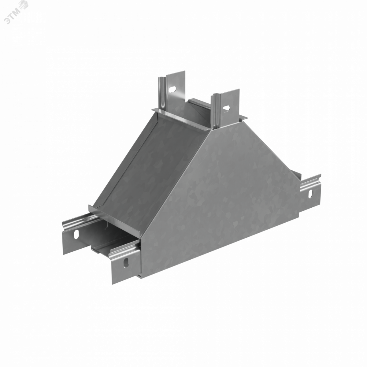 Т-отвод вертикальный вверх серии ''PLUS'' позволяет придерживаться заданных радиусов изгиба кабельной трассы при монтаже. Модификация изделия используется для отвода трассы вверх. Элемент рекомендовано применять c металлическим листовым лотком этой же серии шириной 100 мм и высотой борта 50 мм. Изделие оцинковано методом горячего погружения согласно ГОСТ 9.307-89 и используется для монтажа в помещениях с высокой влажностью и низкой загрязненностью, под открытым небом и в слабокоррозийной среде, в соответствии с ГОСТ15150-69. Т-отвод легко монтируется с помощью метизов. Специальные соединительные лепестки на корпусе секции обеспечивают необходимую жёсткость конструкции стыкового узла и целостность трассы.