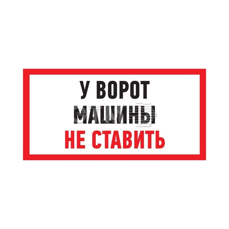 Знак информационный (табличка на подложке) 'У ворот машины не ставить!' предназначен для размещения на ограждениях, стенах строений. Информирует о том, что на данной территории запрещена парковка автомобилей. Знак хорошо виден и сохраняет яркость цветов долгое время даже при постоянном использовании. Имеет хорошую устойчивость к смазыванию, стойкость к прямым солнечным лучам, перепадам температуры, мелким механическим воздействиям. Выполнен из прочного, износостойкого материала. Быстро и легко монтируется на любую поверхность с помощью двустороннего скотча или клея 'Жидкие гвозди', перед креплением саморезами/гвоздями/шурупами рекомендуется воспользоваться сверлом.