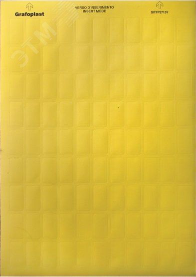 Маркировочные таблички из полиэстера с клейким слоем под офисный лазерный принтер формата А4. Температура эксплуатации – 40 до +150 °С. Размер таблички 12х9мм. Цвет желтый. Упаковка 2860 (10 листов А4).