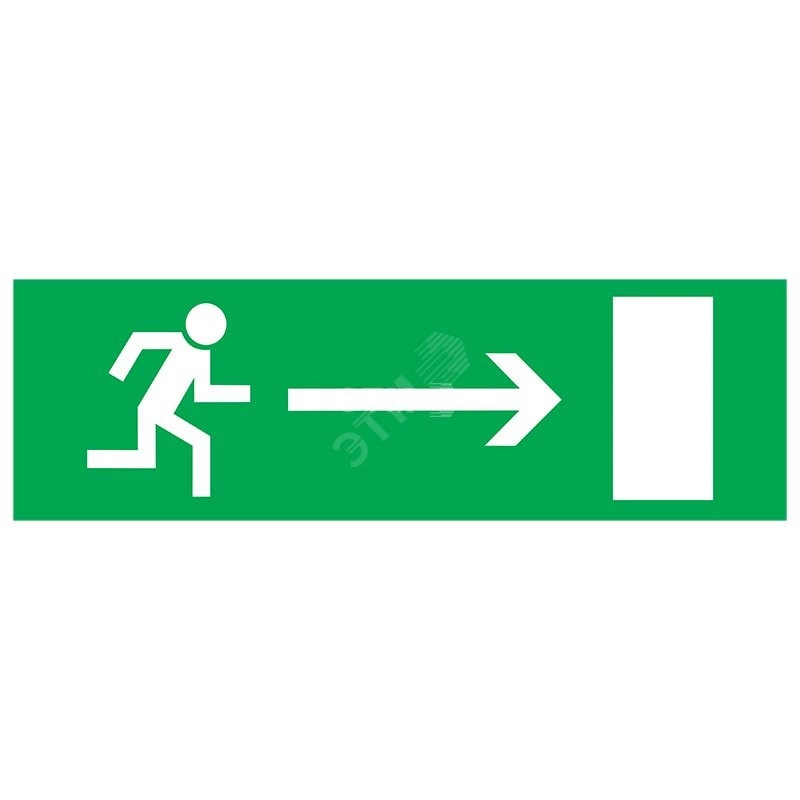 Знак эвакуационный (табличка на подложке) 'Направление к выходу направо', как правило, размещается над дверями запасного эвакуационного выхода или в составе комбинированных знаков безопасности для указания направления движения к эвакуационному выходу. Такие таблички предназначены для своевременного информирования окружающих о путях и методах эвакуации при возникновении чрезвычайных ситуаций. Они обязательны к размещению на предприятиях, в учреждениях, общественных зданиях и сооружениях. Знак хорошо виден и сохраняет яркость цветов долгое время даже при постоянном использовании. Имеет хорошую устойчивость к смазыванию, стойкость к прямым солнечным лучам, перепадам температуры, мелким механическим воздействиям. Выполнен из прочного, износостойкого материала.