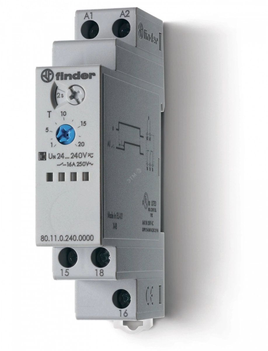 Таймер модульный 1-функциональный (AI) питание 24-240В АС/DC 1CO 16A 17.5мм регулировка времени 0.1с-24ч IP20 версия для ЖД-транспорта