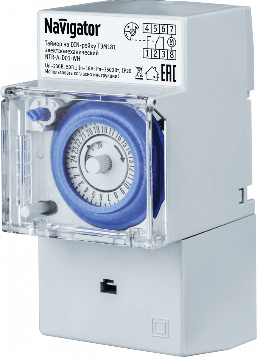 Таймеры на DIN-рейку Navigator серии NTR-E и NTR-A предназначены для автоматического управления (включения/отключения) питанием электрооборудования. Таймеры просты в управлении, имеют компактный размер и современный привлекательный дизайн. Позволяют значительно снизить расходы на электроснабжение и делают удобной эксплуатацию электрических приборов.