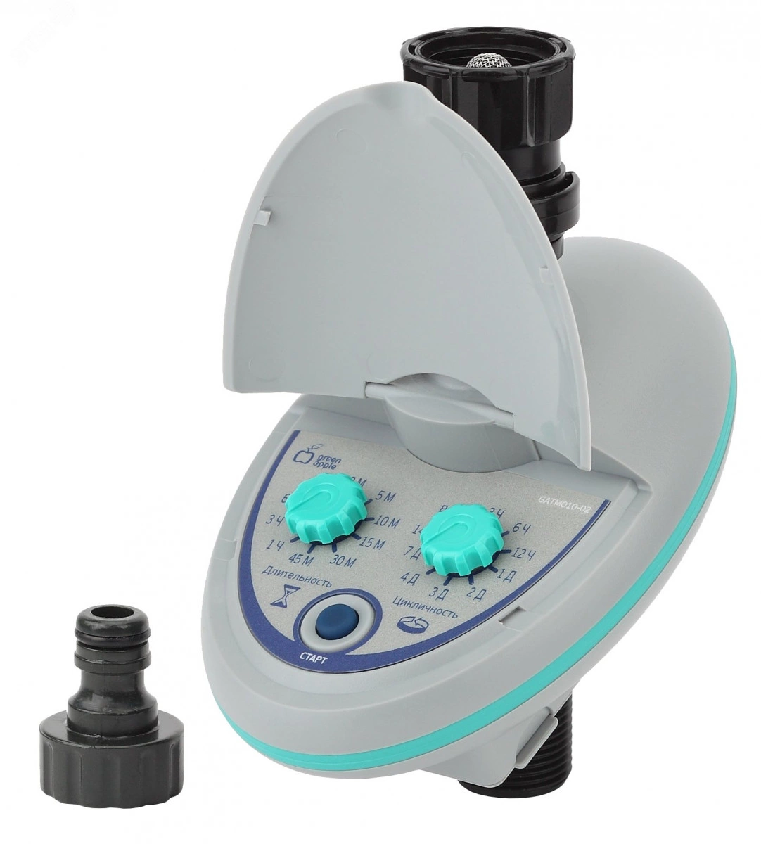 Таймер Green Apple GATM010-02 оснащен панелью с простым механическим управлением, поэтому отличается удобством в эксплуатации. Он позволяет организовать целенаправленный полив газонов, молодых всходов и садово-огородных участков. Максимальная продолжительность полива составляет 540 минут. Частота полива от 3 часов до 14 дней. Корпус из ударопрочного пластика устойчив к повреждениям и неблагоприятным воздействиям внешней среды, что гарантирует продолжительную эксплуатацию. Автономная работа таймера осуществляется за счет использования батарейки. Встроенный фильтр защищает устройство от засорения. Таймер Green Apple GATM010-02 отличается простым монтажом и наличием переходника в комплекте.
