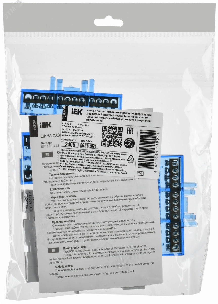 Удобная сборно-разборная конструкция изолятора шины|Закрытый корпус из негорючего материала с защитой от случайного прикосновения к токоведущим частям|Универсальный держатель шины с вариантами установки как на DIN-рейку, так и на плоскую поверхность