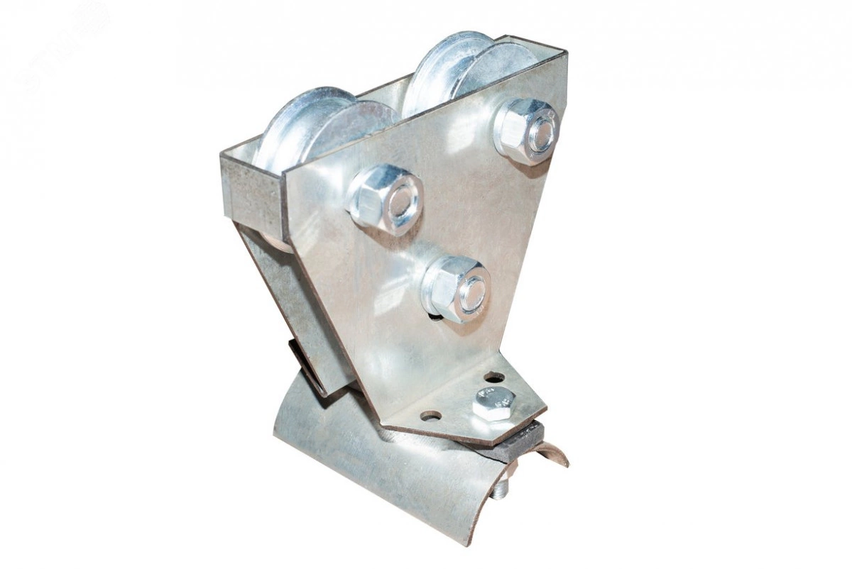Тележка тросовая под кабель ТТК-3 с тремя роликами производства ''Кранэлектро''. Тележка кабельна ТТК-3 применяется для поддержания и плавного перемещения питающего электрического кабеля или шлангов как по натянутому тросовому основанию, так и по двутавру. Подобные изделия используются на различных мостовых и козловых кранах, тельферах, талях, монорельсовых тележках и т.п.