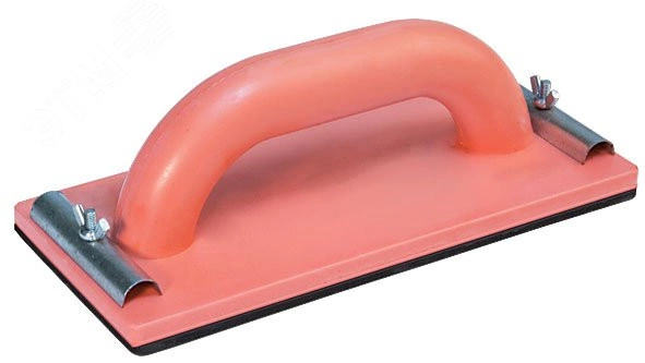 Для наждачной бумаги. Используется при обработке плоских поверхностей. Материал - полиуретан, металлические прижимы.