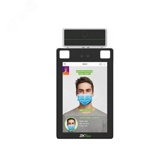 Терминал распознавания лиц ZKTeco ProFaceX[TI] антивандальный биометрический с функцией измерения температуры тела человека. ProFaceX[TI] поддерживает несколько методов верификации- лицо, ладонь, карта, пароль. Терминал оснащен тепловизорной камерой и обладает функцией определения наличия медицинской маски.
