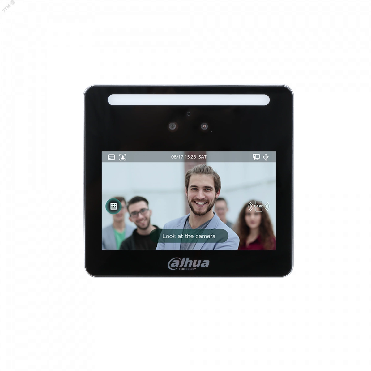 Терминал с распознаванием лиц и учетом посещаемости, 4,3-дюймовый сенсорный ЖК-экран, разрешение 480 ? 272, С 2мп двойной широкоугольнойкамерой, подсветка LED и ИК, поддержка лица, карты и пароля, поддержка 500 пользователей, 500 изображений лиц, 500 карт, 150 000 записей и автономная работа без сети, расстояние от камеры до лица - 0,3 м – 1,5 м, точность проверки лица 99,5%, скорость распознавания лиц 0,3 с, определение подлога лица