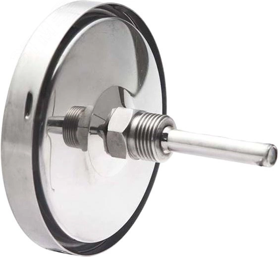 Предназначен для измерения температуры агрессивных жидкостей и газов. Принцип действия термометров БТ основан на зависимости деформации чувствительного элемента от измеряемой температуры. В качестве такого элемента используется биметаллическая пружина. Она изготавливается из двух прочно соединенных металлических пластин, имеющих различные температурные коэффициенты линейного расширения. При изменении температуры пружина изгибается и вращает стрелку. Один конец пружины закреплен внутри штока, а к другому присоединяется ось стрелки.
