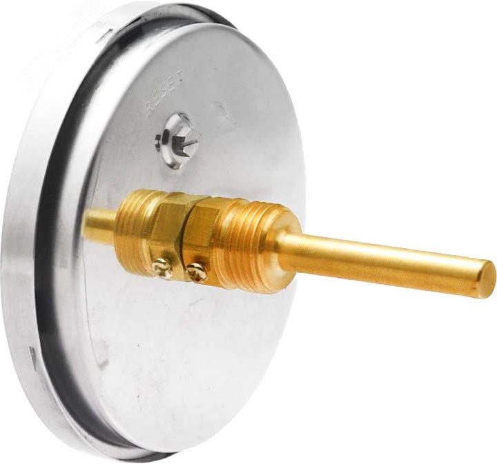 Прибор предназначен для измерения температуры жидкостей, пара и газов в отопительных и санитарных установках, в системах кондиционирования и вентиляции. Принцип действия прибора основан на зависимости деформации чувствительного элемента от измеряемой температуры. В качестве чувствительного элемента используется биметаллическая пружина. Она изготавливается из двух прочно соединенных металлических пластин, имеющих различные температурные коэффициенты линейного расширения. При изменении температуры пружина изгибается и вращает стрелку термометра. Один её конец закреплен внутри штока, а к другому присоединяется ось стрелки. Корпус прибора изготавливается из коррозионностойкой стали, шток - из нержавеющей стали.