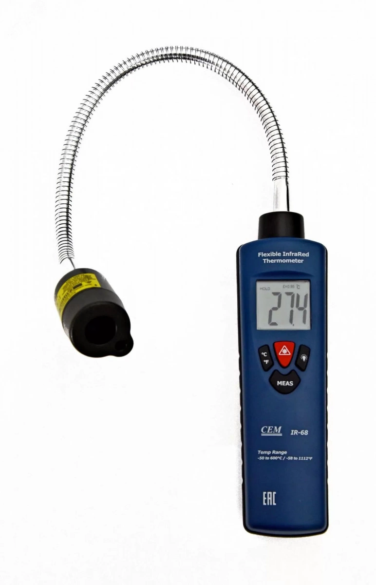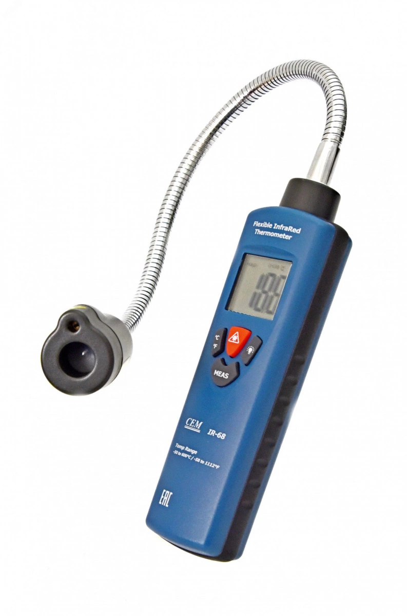 Бесконтактный ИК-термометр серии IR-68 - многофункциональный и недорогой прибор, обеспечивающий быстрое бесконтактное измерение температуры в широком диапазоне. С помощью яркого лазерного луча легко наводится на объекты. Встроенный лазерный указатель определяет целевую область. Детектором на гибкой шее 16 легко измерять труднодоступные области.
