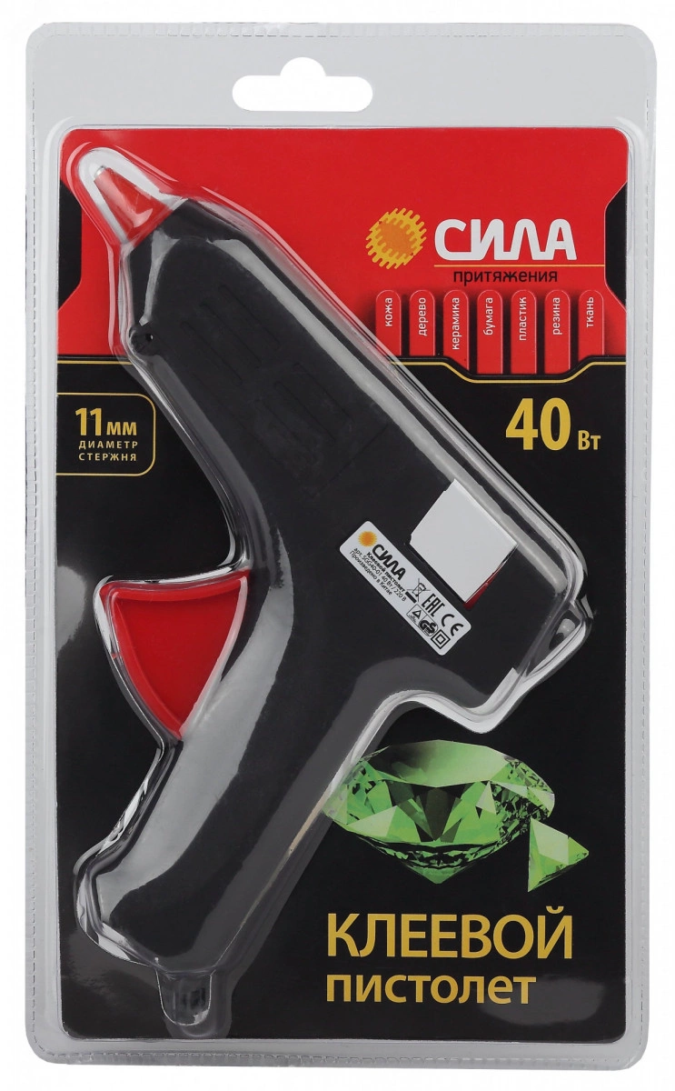 Термопистолет клеевой под стержень 11мм в комплекте 11мм х 7cм 2 шт. СИЛА SGG40-01 40Bт