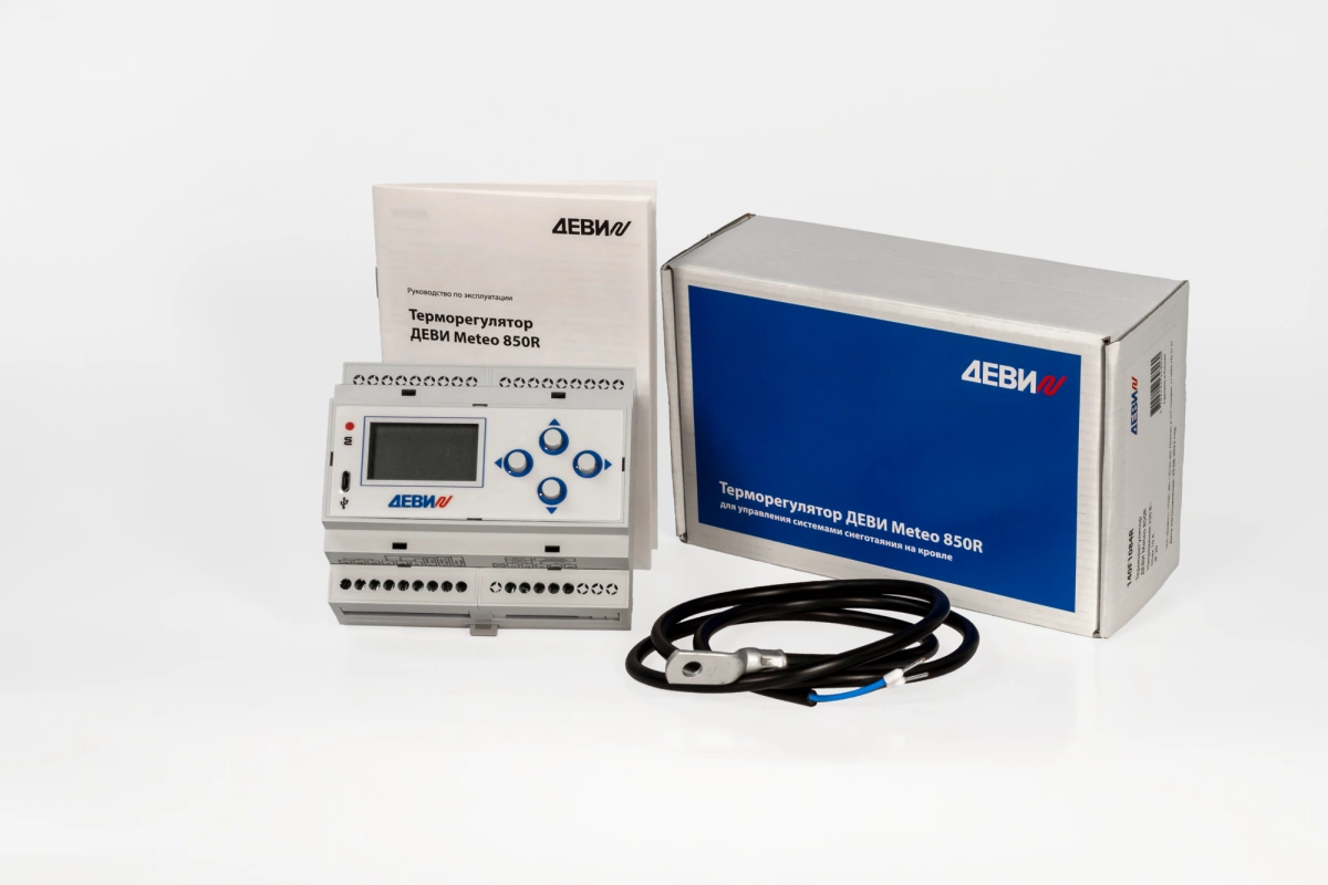 ДЕВИ Meteo 850R - программируемая метеостанция, предназначена для управления кабельными системами снеготаяния, установленными на кровле. Позволяет контролировать температуру окружающей среды и наличие атмосферных осадков, включать систему кабельного обогрева в автоматическом режиме.