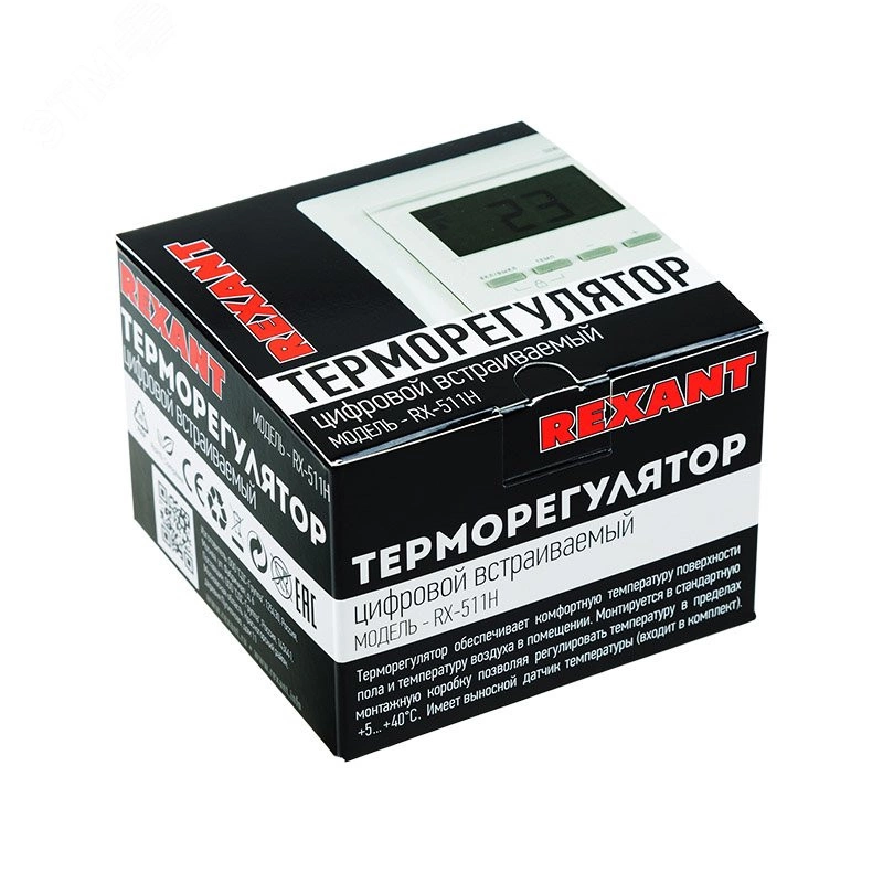 Электронный термостат RX-511H встраиваемый, корпус белый, диапазон регулировок + 5 градусов/+40 градусов, коммутируемый ток контактов 16 А (3500 Вт), внешний датчик температуры 10 кОм. Используется для управления кабельными нагревательными системами.