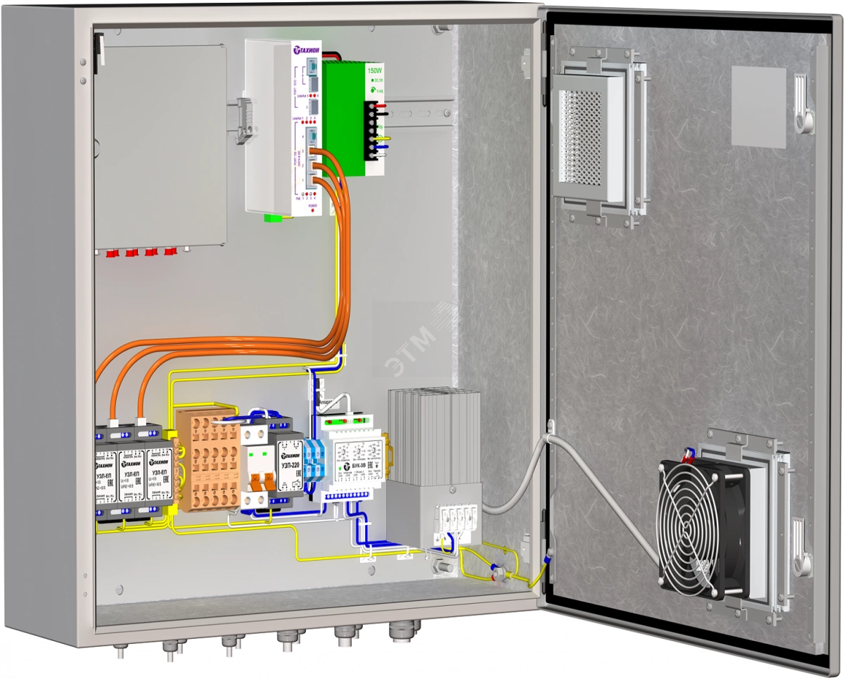 Термошкаф ТШ-1В-08 предназначен для установки в нём оборудования, обеспечивающего работу от 3-х до 8-х IP-видеокамер (стационарных и(или) поворотных) с питанием по технологии РоЕ, поддержания заданного температурного режима при эксплуатации этого оборудования и коммутации сигналов от IP-видеокамер в оптическую линию.
