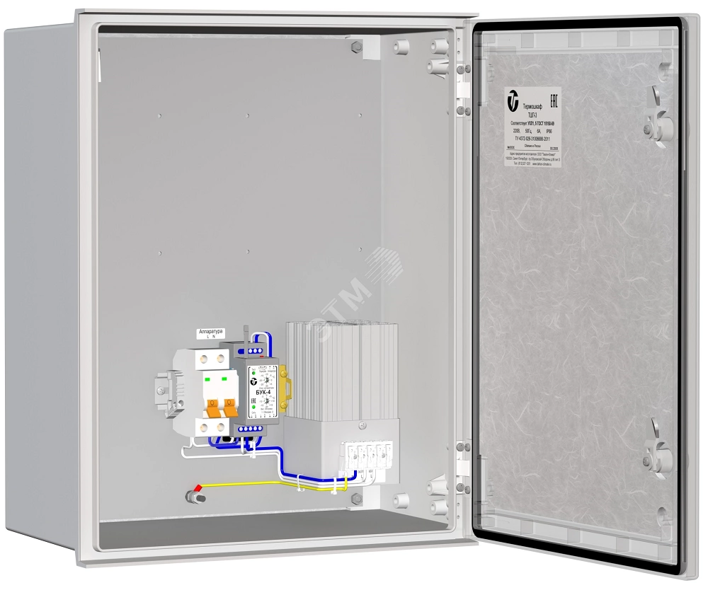 Термошкаф ТШП-3 предназначен для установки в нём телевизионного либо другого электронного оборудования и поддержания заданного температурного режима при эксплуатации этого оборудования в условиях морского климата, на химических производствах, на автомагистралях, в тоннелях и прочих агрессивных средах. Материал термошкафа – армированный стекловолокном полиэстер, класс ударопрочности IK10.
