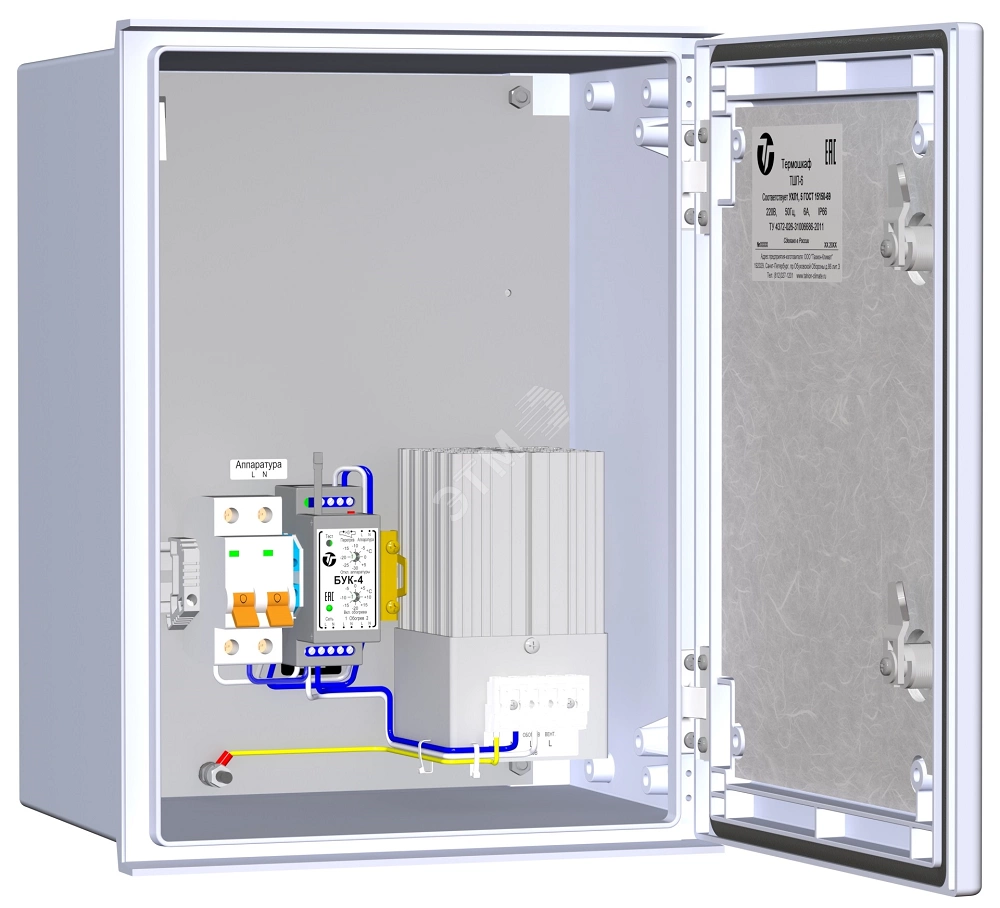 Термошкаф ТШП-6 предназначен для установки в нём телевизионного либо другого электронного оборудования и поддержания заданного температурного режима при эксплуатации этого оборудования в условиях морского климата, химических производств, автомагистралей, тоннелей и прочих агрессивных сред. Материал термошкафа – армированный стекловолокном полиэстер, класс ударопрочности IK10.