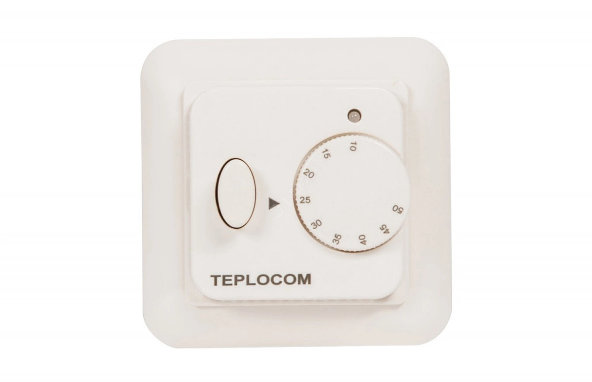 TEPLOCOM TSF-220/16A представляет собой прибор, устанавливаемый в обыкновенную внутреннюю электромонтажную коробку рядом с любой удобной розеткой. Высота установки — от 50 см. На лицевой панели TEPLOCOM TSF-220/16A есть градуированный диск управления (ручка) и сигнальный светодиод красного цвета, включающийся при подаче напряжения на тёплые полы, и мигающий в случае аварии термодатчика. Существующая мощность подключаемой нагрузки составляет 16 А, что позволяет подключать любые комплекты тёплых полов из линейки TEPLOCOM МНД.