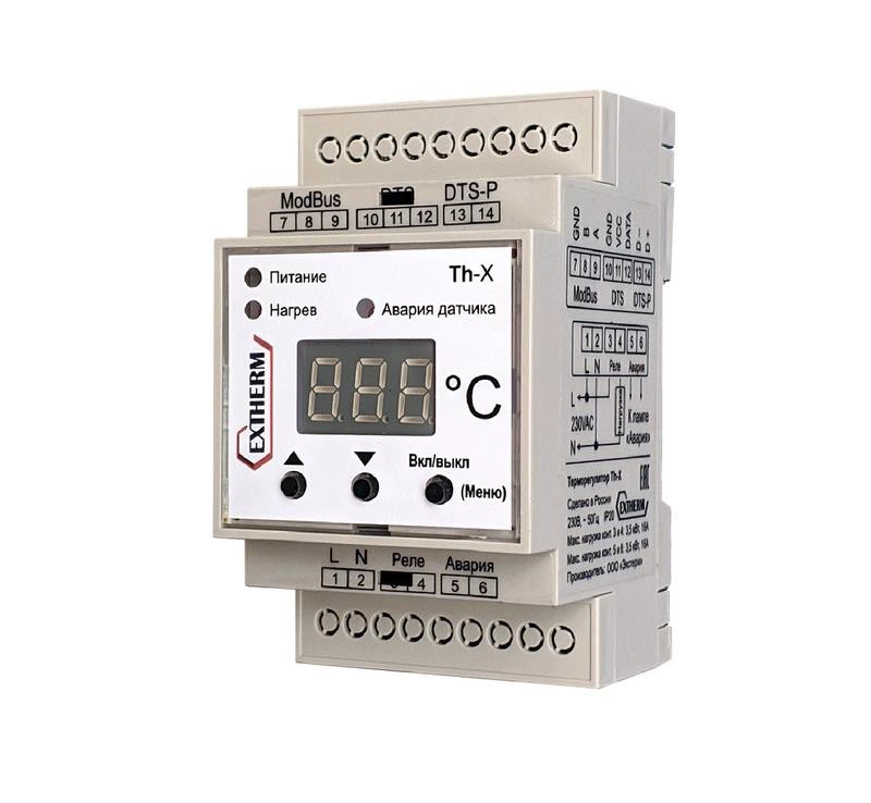 Термостат универсальный одноканальный для управления системами электрообогрева с передачей данных через интерфейс RS-485 по протоколу MOD_BUS/RTU EXTHERM Th-X