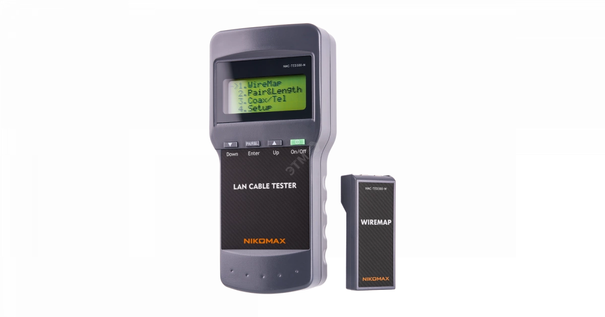 Кабельный тестер NMC-TED300 с LCD дисплеем предназначен для работы с кабелями витая пара, оконцованными разъемами RJ45.Тестер способен диагностировать такие ошибки в линии как нарушение схемы разводки проводников, обрыв проводников и короткие замыкания, а так же способен измерить длину кабельной линии. Тестер имеет несколько ячеек хранения параметров калибровки для работы с кабелями разных производителей и категорий. Основные функции - 1. Поиск обрывов, коротких замыканий, перекрестных соединений, определение места обрыва кабеля. 2. Измерение длины LAN кабелей длиной до 1000 метров. 3. Работа до 50-ти часов в режиме ожидания. 4. Настраиваемое автоматическое отключение. 5. Возможность хранения результатов калибровки. 6. Автоматический тест при запуске для подстройки под внешние условия (температуру) и заряд батареи.