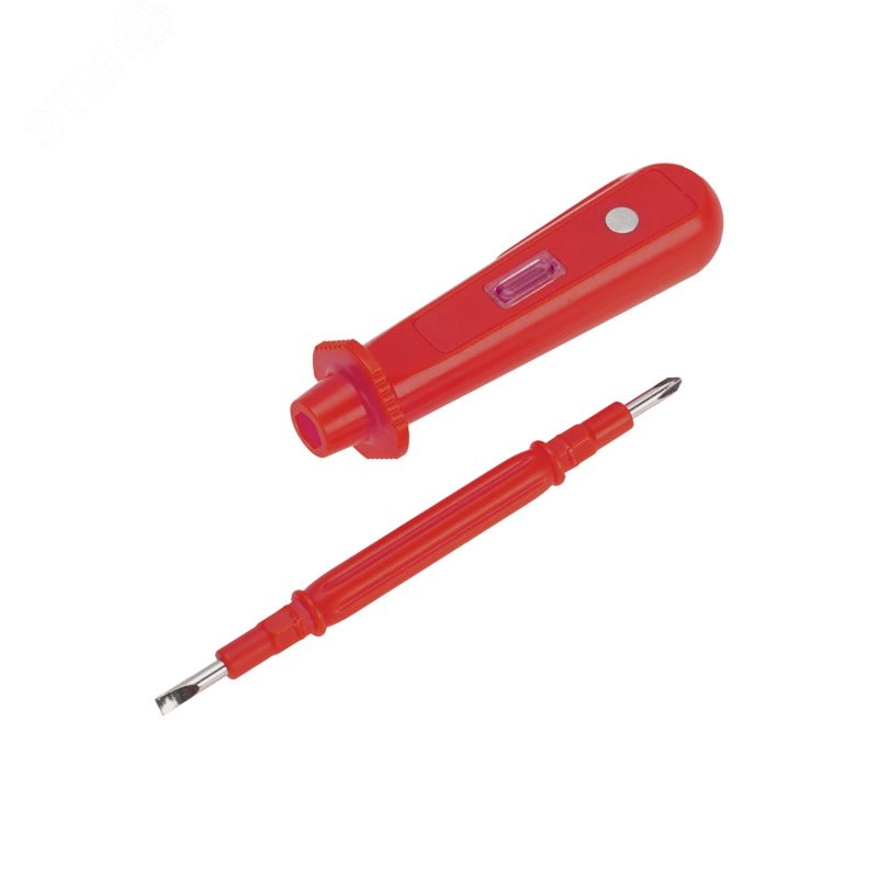 Тестер-пробник R-14 предназначен для быстрой и эффективной диагностики электрооборудования. Прибор обладает световой индикацией, которая позволяет оператору легко определить наличие электрического напряжения. Тестер оснащен переставным жалом, которое может быть использовано в крестообразном и шлицевом вариантах. Это позволяет оператору выбрать подходящий тип жала в зависимости от требований конкретной ситуации. Сталь высокой закалки (50HRC) позволяет использовать тестер как отвертку. Наличие намагниченных наконечников обеспечивает удобство при удержании винтов, что особенно полезно при работе с клеммными колодками и светильниками. Рукоятка и жало прибора изолированы для безопасности при работе с электрическими компонентами. Наконечник тестера напрямую контактирует с линией провода, что обеспечивает точную и надежную диагностику электрооборудования.