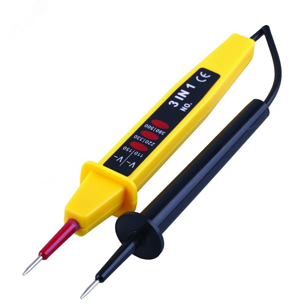 Полное описание: Тестер ступенчатой индикации напряжения контактный двухполюсной до 500V, желтый, Stekker