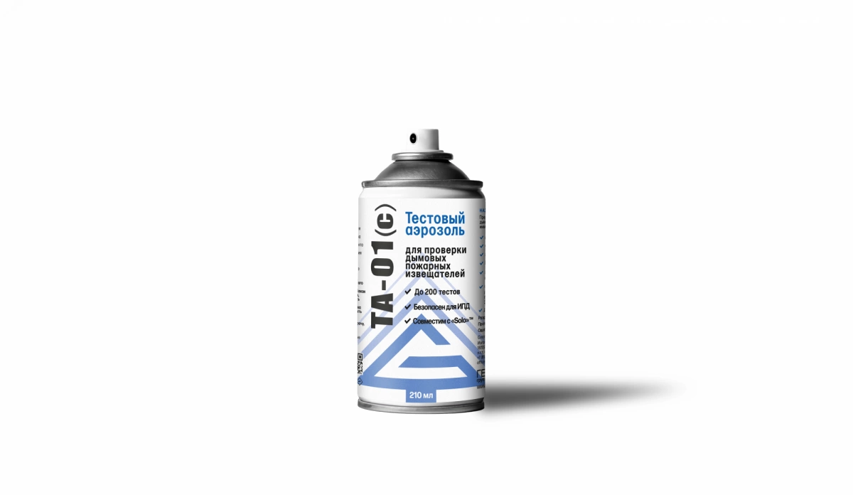 Тестовый аэрозоль для проверки дымовых ИПД ТА 01(с) 210 мл. Предназначен для контроля функционирования дымовых пожарных извещателей различных типов в качестве имитатора натурного (тестового) очага пожара.