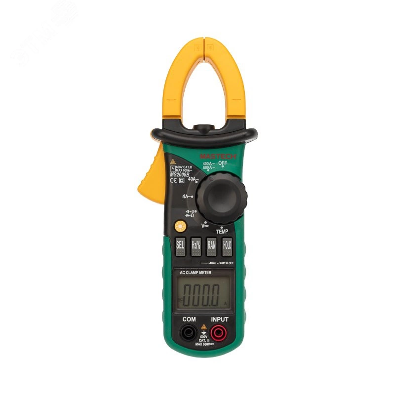 Токоизмерительные клещи (или Клещи Дитце) – это прибор, который позволяет измерять переменный ток без разрыва самой цепи, в которой проводится измерение. Прибор получает результат измерений исходя из закона электромагнитной индукции. Токоизмерительные клещи MS2008B являются многофункциональным прибором, с помощью которого можно измерить множество параметров (измерение переменного тока, постоянного и переменного напряжения, сопротивление, частоту сигнала, емкость конденсаторов и даже температуру). Кроме того, у данного прибора есть функция прозвонки целостности цепи и проверки диодов. Токовые клещи MS2008B имеют функцию удержания результата измерений DATA HOLD. Прибор изготовлен из высококачественных материалов и имеют эргономичный дизайн.