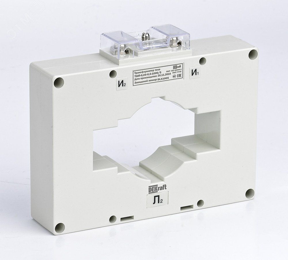 Трансформатор тока ТШП-0,66 DEKraft, класс точности 0,5, ном. напряжение 0,66 кВ, коэфф. трансформации 1200/5, ном. вторичная нагрузка 10 ВА, диаметр 80 мм, размеры шины 80х10 мм и 60х30 мм. Трансформаторы тока ТШП-0,66 предназначены для контроля и передачи сигналов измерительной информации различным приборам в электрических цепях переменного тока частотой 50 Гц. Огнестойкий материал корпуса, защита от несанкционированного доступа, высокая точность измерений, высокие метрологические характеристики, малые потери мощности и стабильная работа устройства обеспечены.