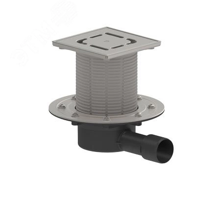 Трап горизонтальный регулируемый c прижимным фланцем ТП-510.1-3000 для внутренней канализации 50,40 мм, с решеткой из нержавеющей стали 15х15 см и гидрозатвором