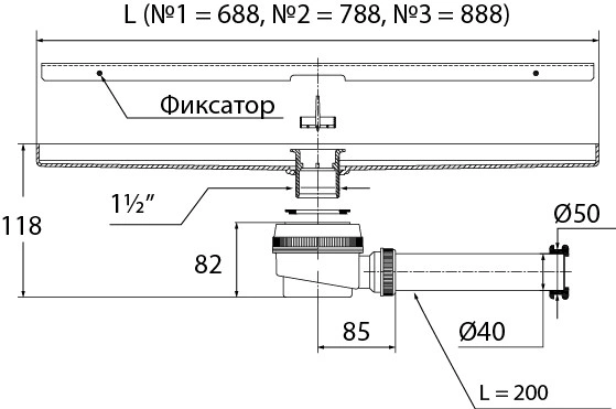Трап лоток для душевых L 880 мм (профиль - овал + круглый сифон для душевого поддона)
