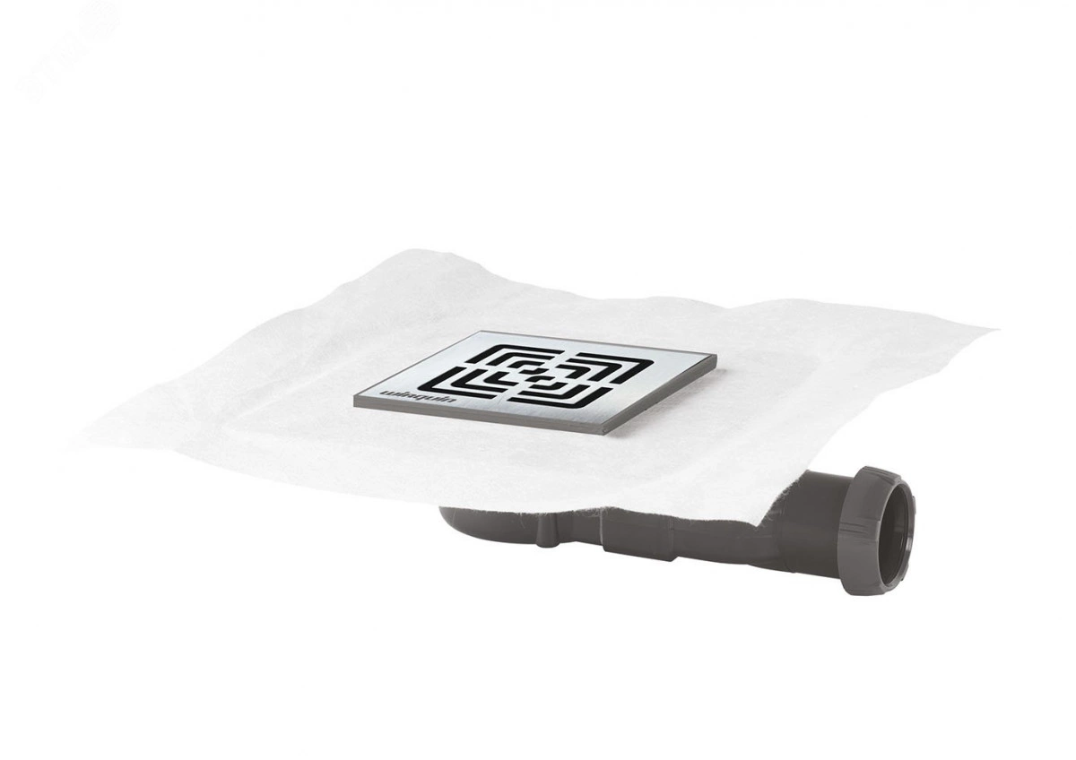 Трап с гидроизоляционным полотном и уплотнением из полистирола с нержавеющей решеткой 115 х 115 мм сифон Slim
