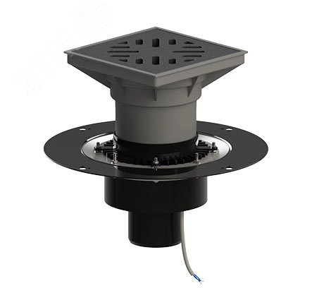Трап вертикальный дворовый регулируемый ТП-616.110-Э с выходным диаметром 110 мм, с прижимным фланцем, чугунной решеткой, с обогревом